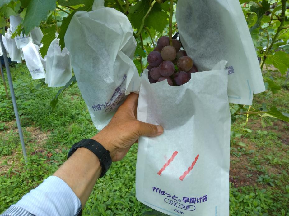 やっと糖度検査用のサンプルの房の決定と袋の表示です。