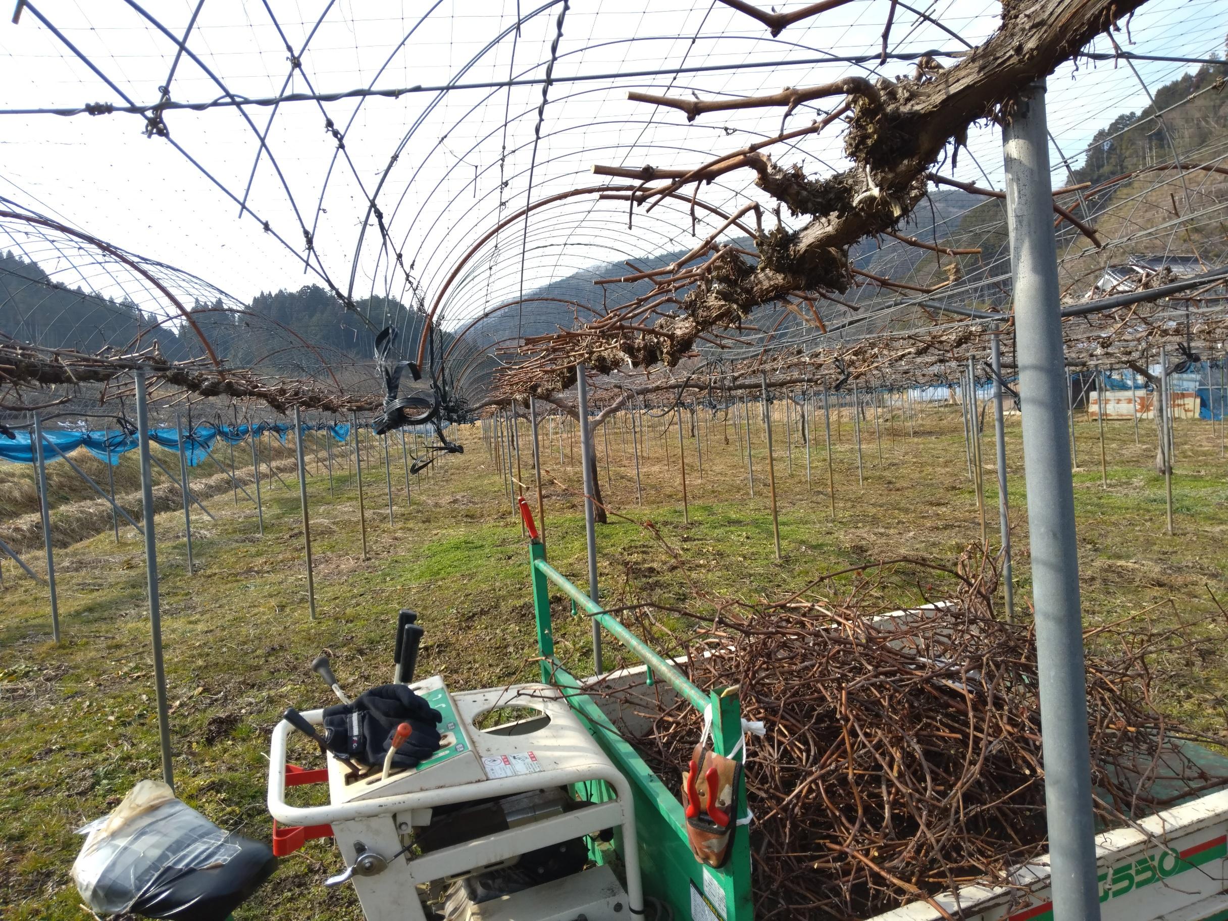正月明けにハウスから始めブドウの仮剪定がやっと終了した。それから雪が降り続いているが、本剪定までに済ませておく作業も多いので早く天気になって欲しいものである。